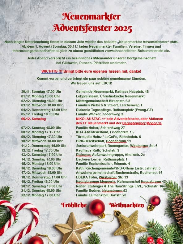 Der FC Neuenmarkt bietet auch dieses Jahr wieder einen ehrenamtlichen Nikolausdienst an.